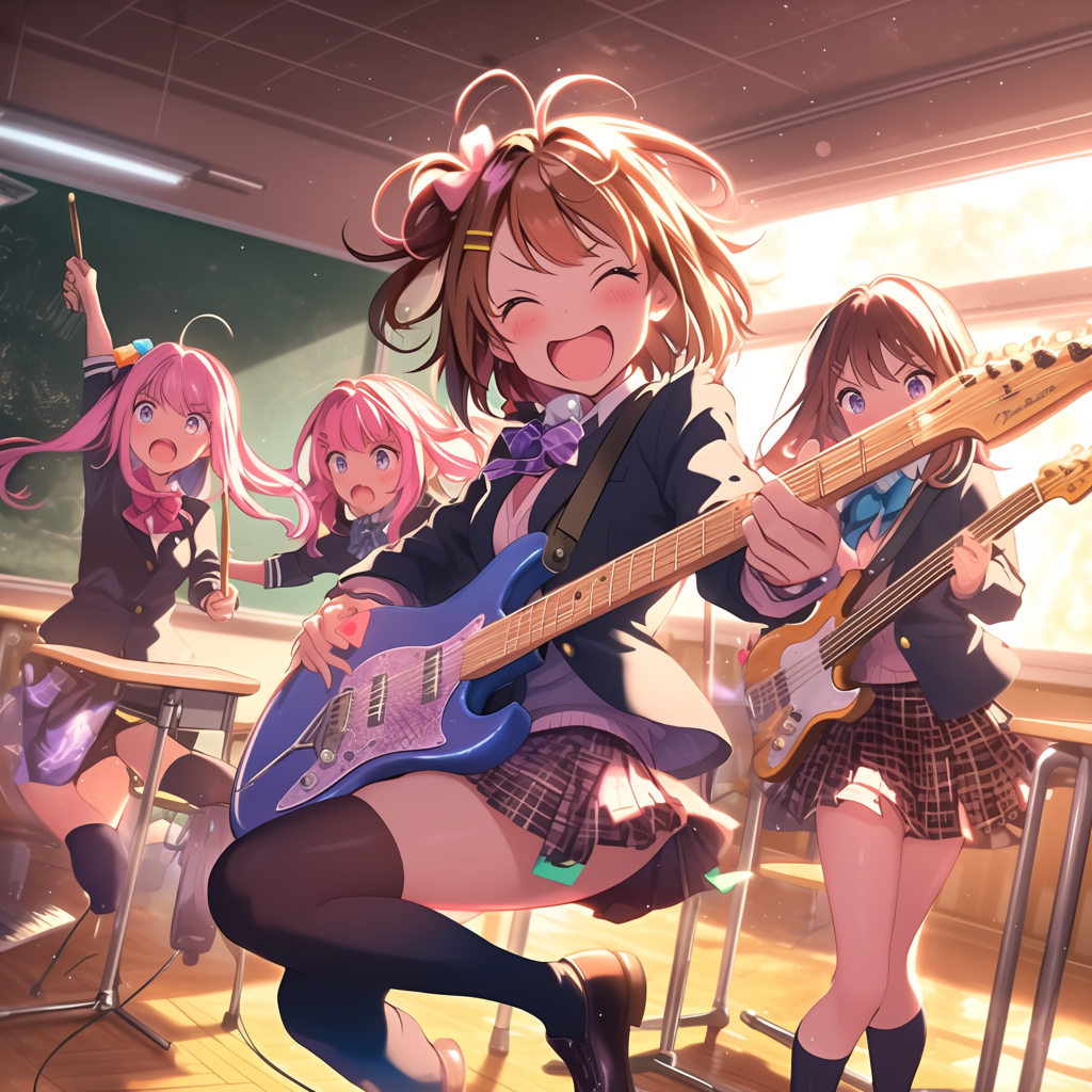 今日はついに、ガールズバンド「キャット」の学園祭ライブ出演が決定した日――!✨